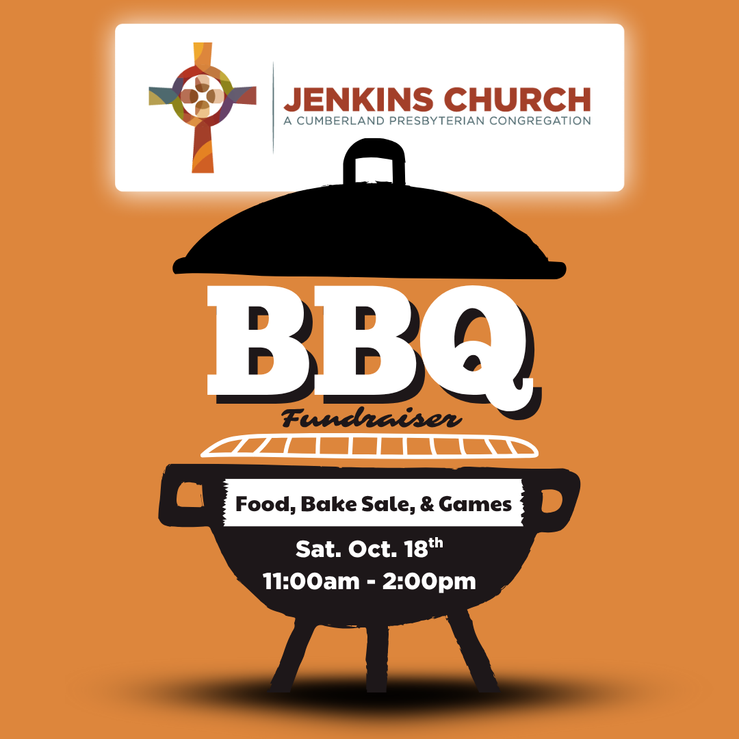 Join us for our BBQ and bake sale fundraiser at Jenkins Church on Saturday, October 18th from 11:00 am to 2:00 pm at 2501 York Road in Nolensville. We are going to have pulled pork BBQ, sides, drinks, desserts, games, and more!